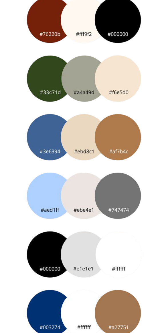 These color combinations capture the essence of Old Money style—timeless, understated, and effortlessly elegant. Rich classic tones paired with soft neutrals create refined outfits that speak of quality, heritage, and quiet sophistication. Perfect for building a wardrobe that never goes out of style.